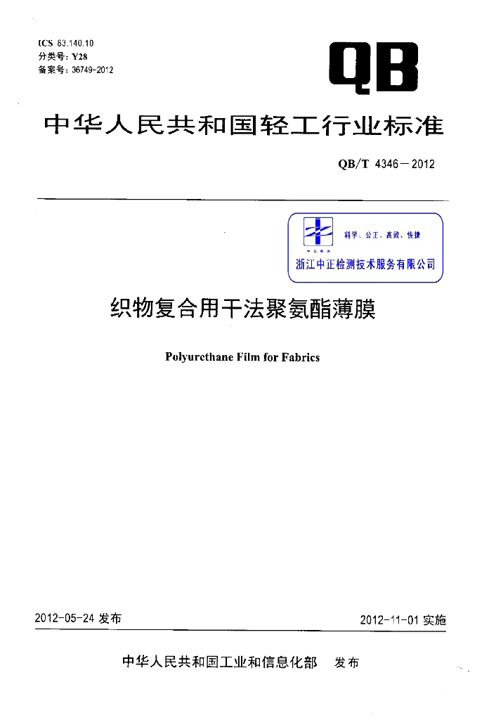 QB/T 4346-2012 织物复合用干法聚氨酯薄膜