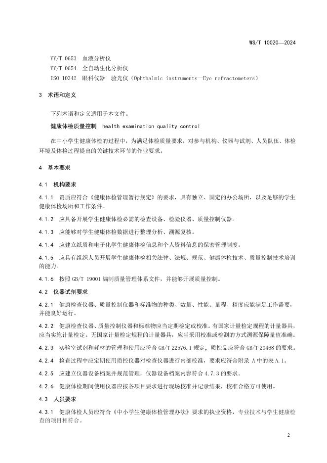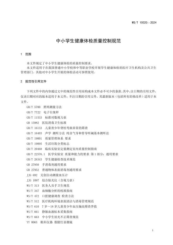 WS/T 10020-2024 中小学生健康体检质量控制规范