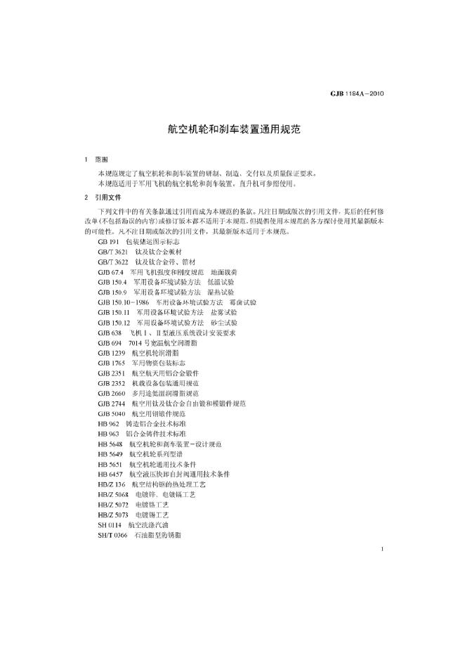 GJB 1184A-2010 航空机轮和刹车装置通用规范