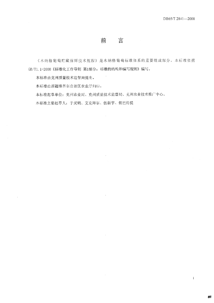 DB65/T 2841-2008 木纳格葡萄储藏保鲜技术规程