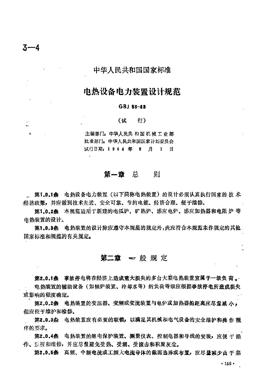 GBJ 56-1983 电热设备电力装置设计规范