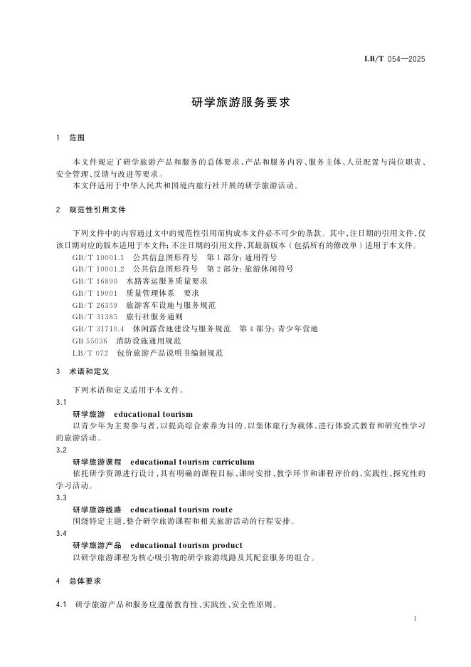 LB/T 054-2025 研学旅游服务要求