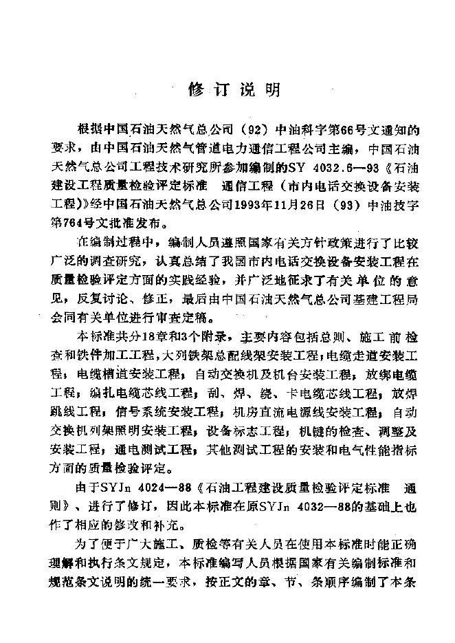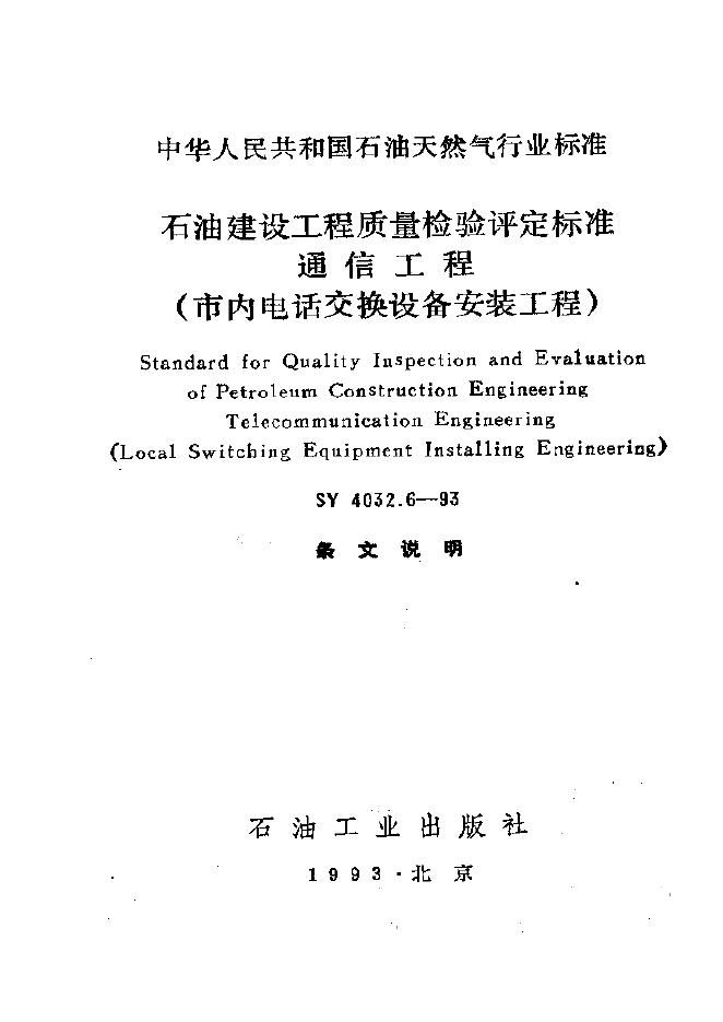 SY 4032.6-1993 石油建设工程质量检验评定通信工程市内电话交换设备安装工程