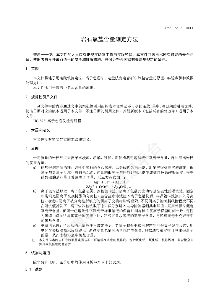 SY/T 5503-2024 岩石氯盐含量测定方法