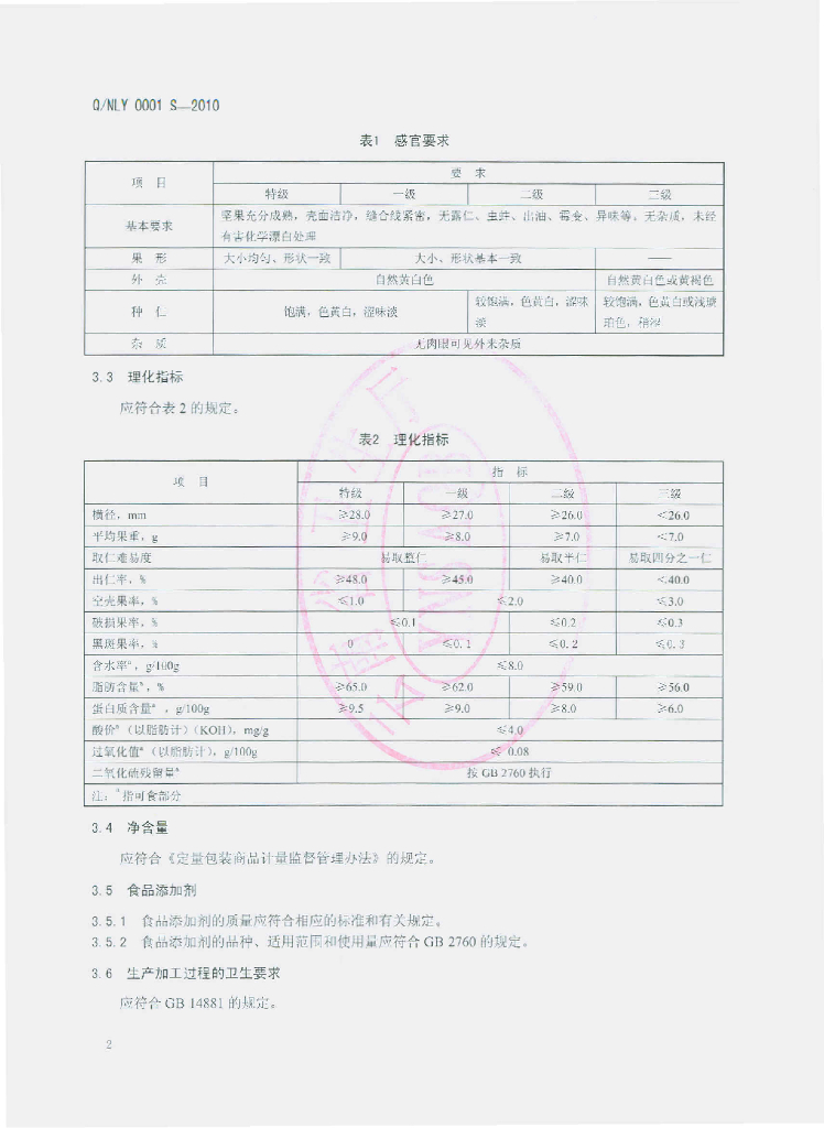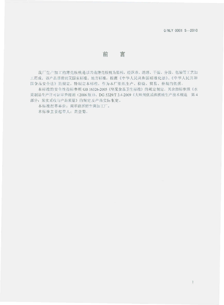 Q/NLY 0001S-2010 薄壳核桃