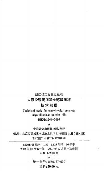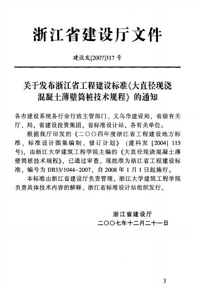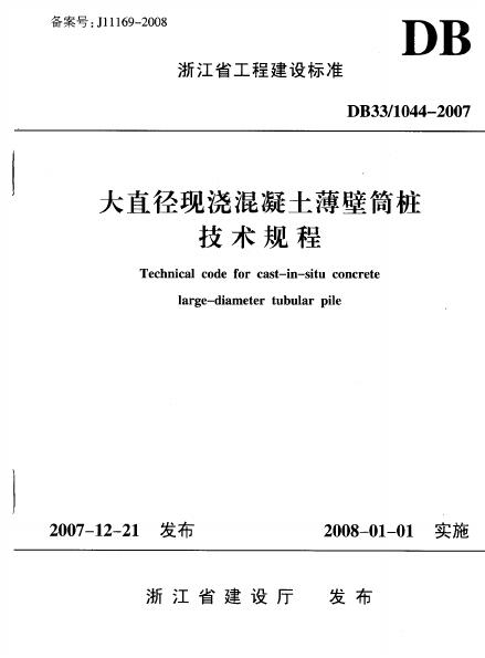 DB33/ 1044-2007 大直径现浇混凝土薄壁筒桩技术规程