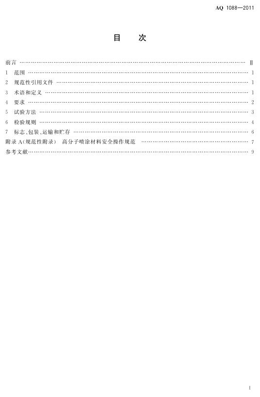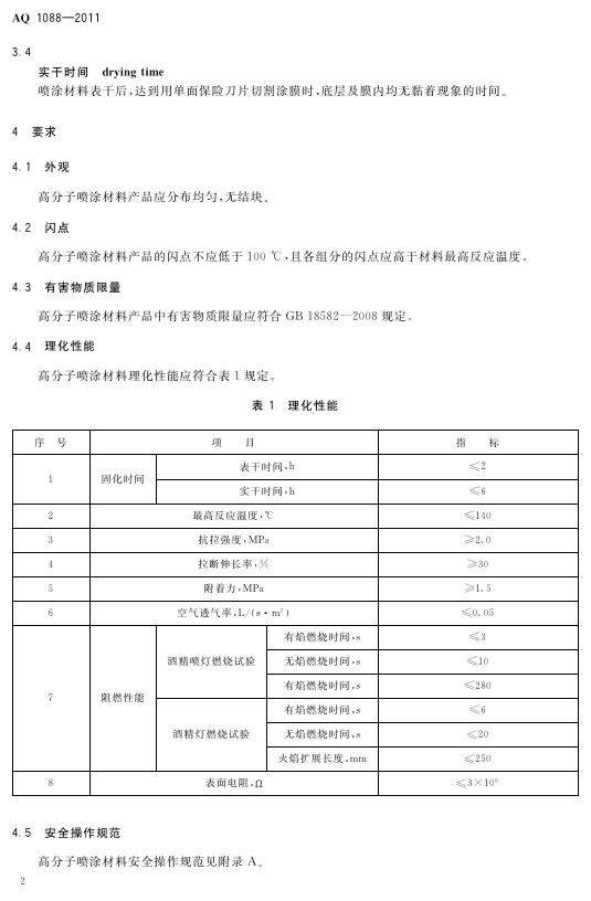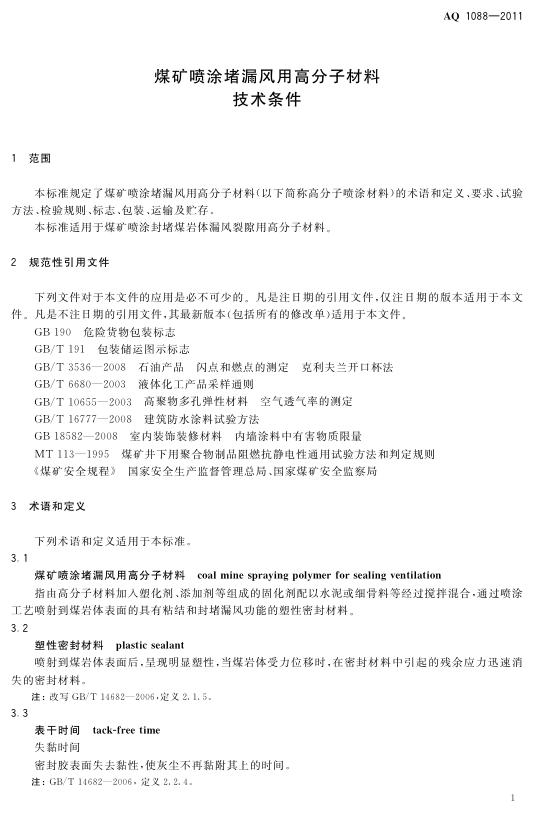 AQ 1088-2011 煤矿喷涂堵漏风用高分子材料技术条件