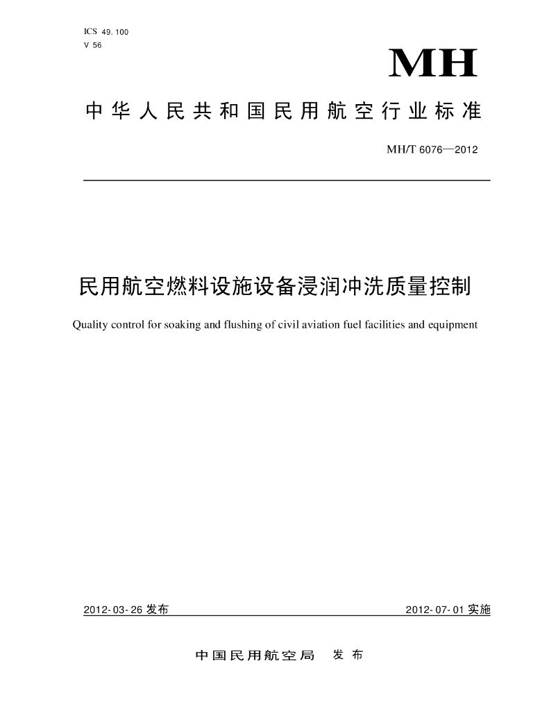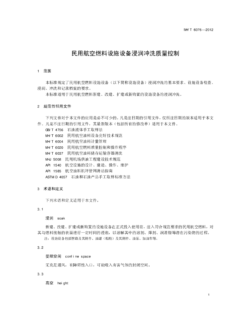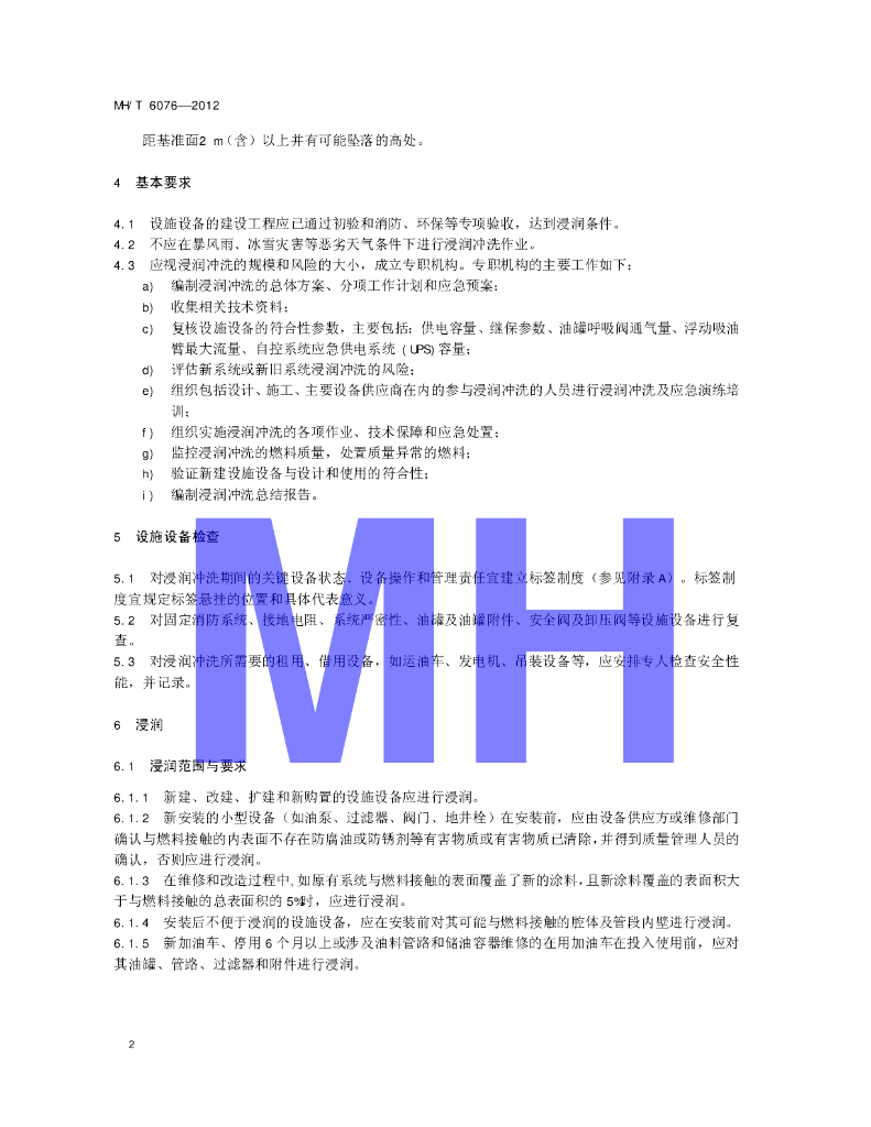 MH/T 6076-2012 民用航空燃料设施设备浸润冲洗质量控制