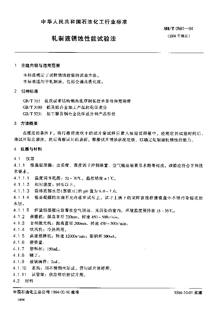 SH/T 0581-1994 轧制液锈蚀性能试验法