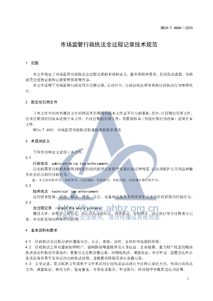 DB34/T 4884-2024 市场监管行政执法全过程记录技术规范