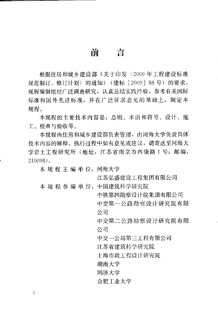 河海大学、江苏弘盛建设工程集团有限公司、中国建筑科学研究院、中铁第四勘察设计院集团有限公司、中交第一公路勘察设计研究院有限公司、中交第二公路勘察设计研究院有限公司、中交一公局第三工程有限公司、江苏省建筑科学研究院、上海市政工程设计研究院、湖南大学、同济大学、合肥工业大学