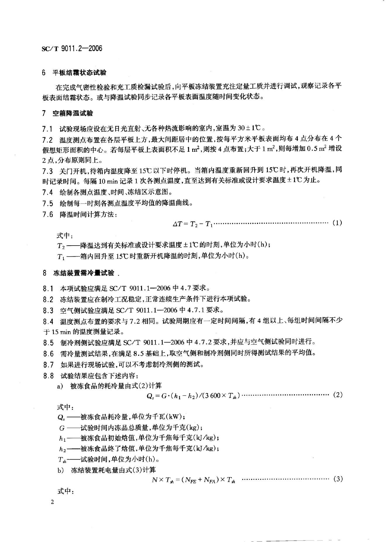 SC/T 9011.2-2006 冻结装置试验方法 第2部分:平板冻结装置试验方法