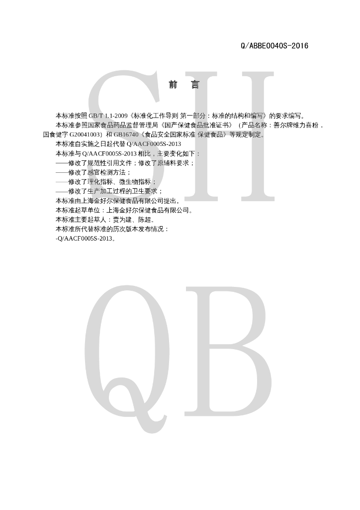 Q/ABBE 0040S-2016 善尔牌维力喜粉