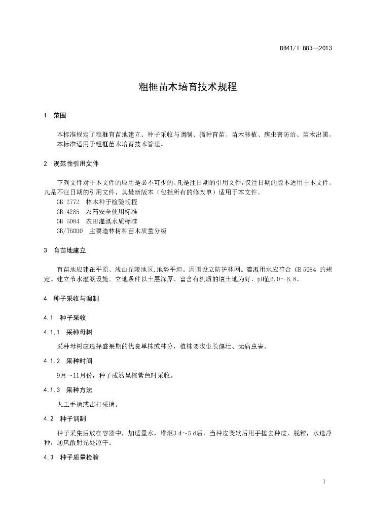 DB41/T 883-2013 粗榧苗木培育技术规程