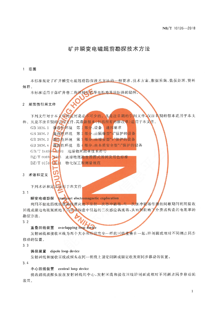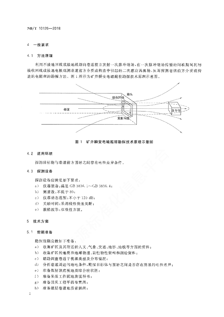 NB-T 10126-2018 矿井瞬变电磁超前勘探技术方法