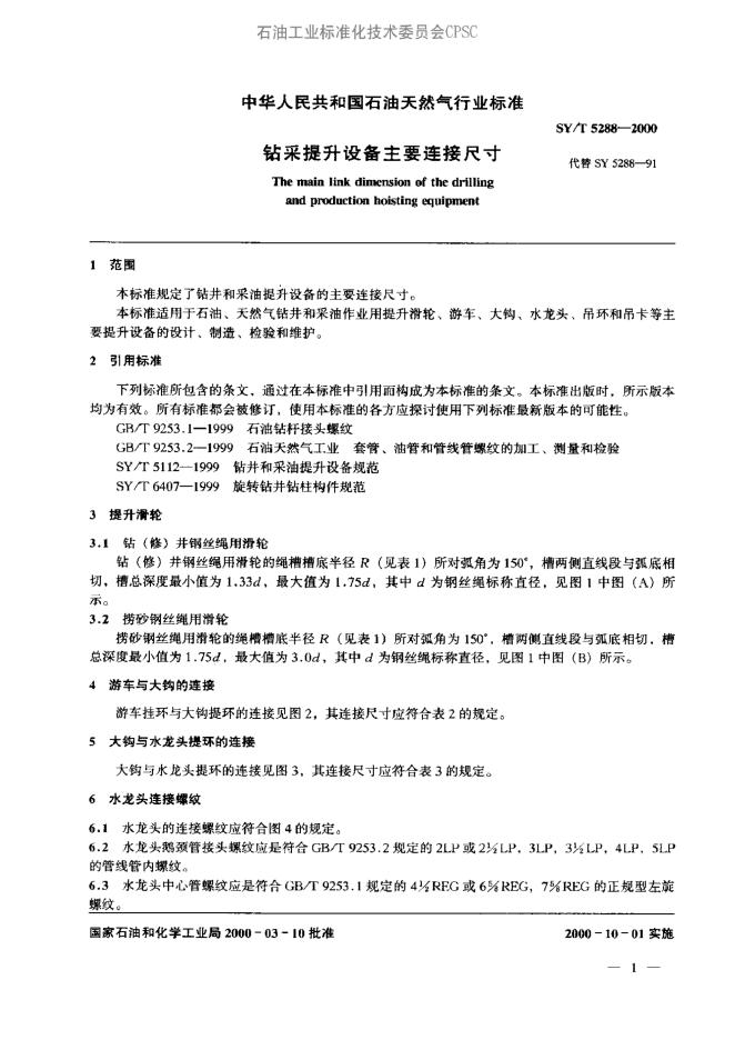SY 5288-1991 钻井提升设备主要连接尺寸