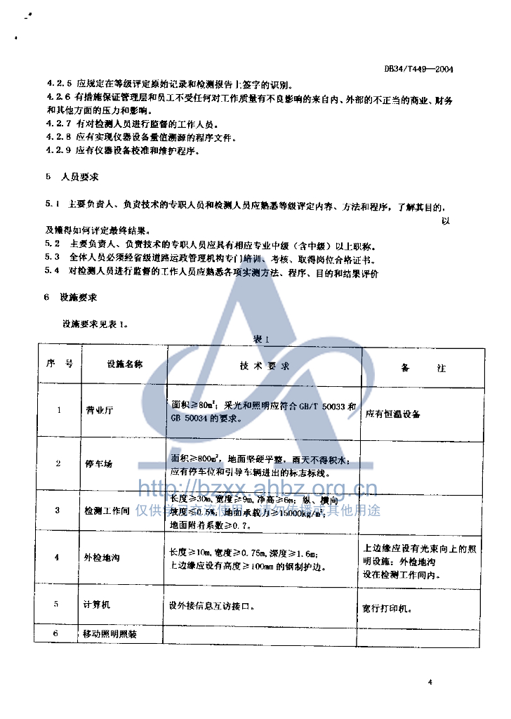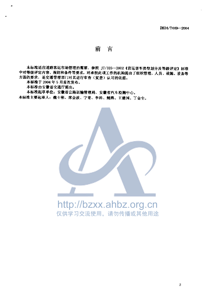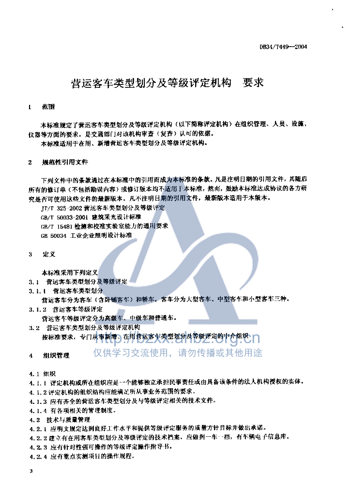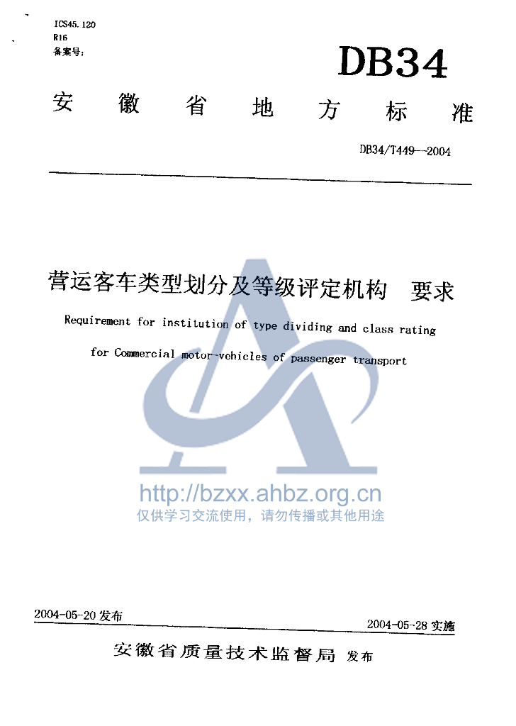 DB34/T 449-2004 营运客车类型划分及等级评定机构 要求