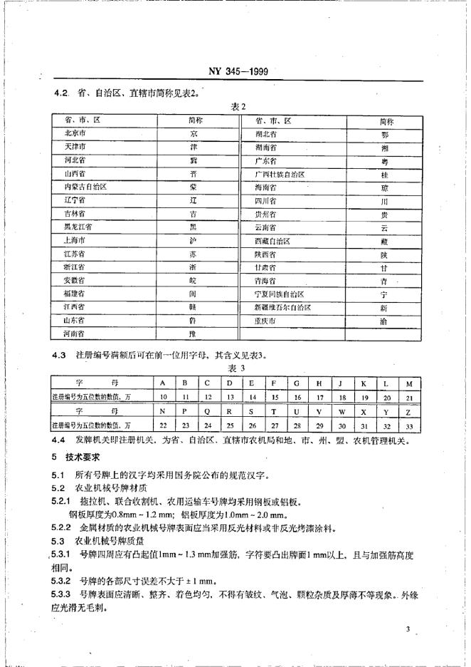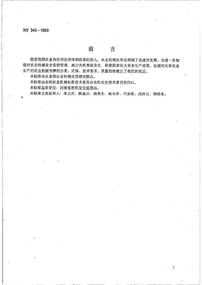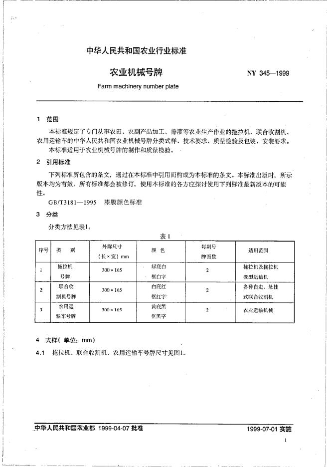 NY 345-1999 农业机械号牌