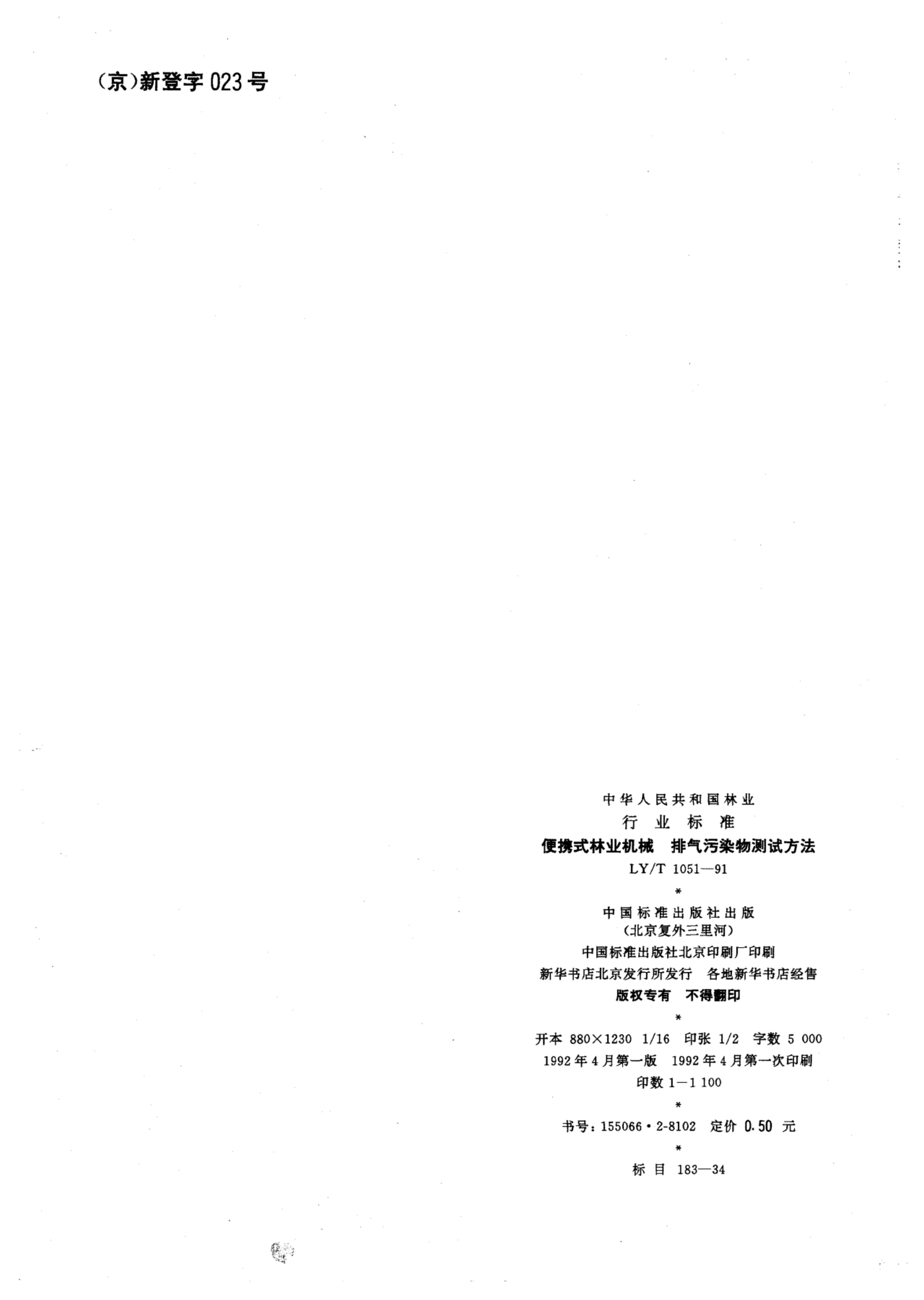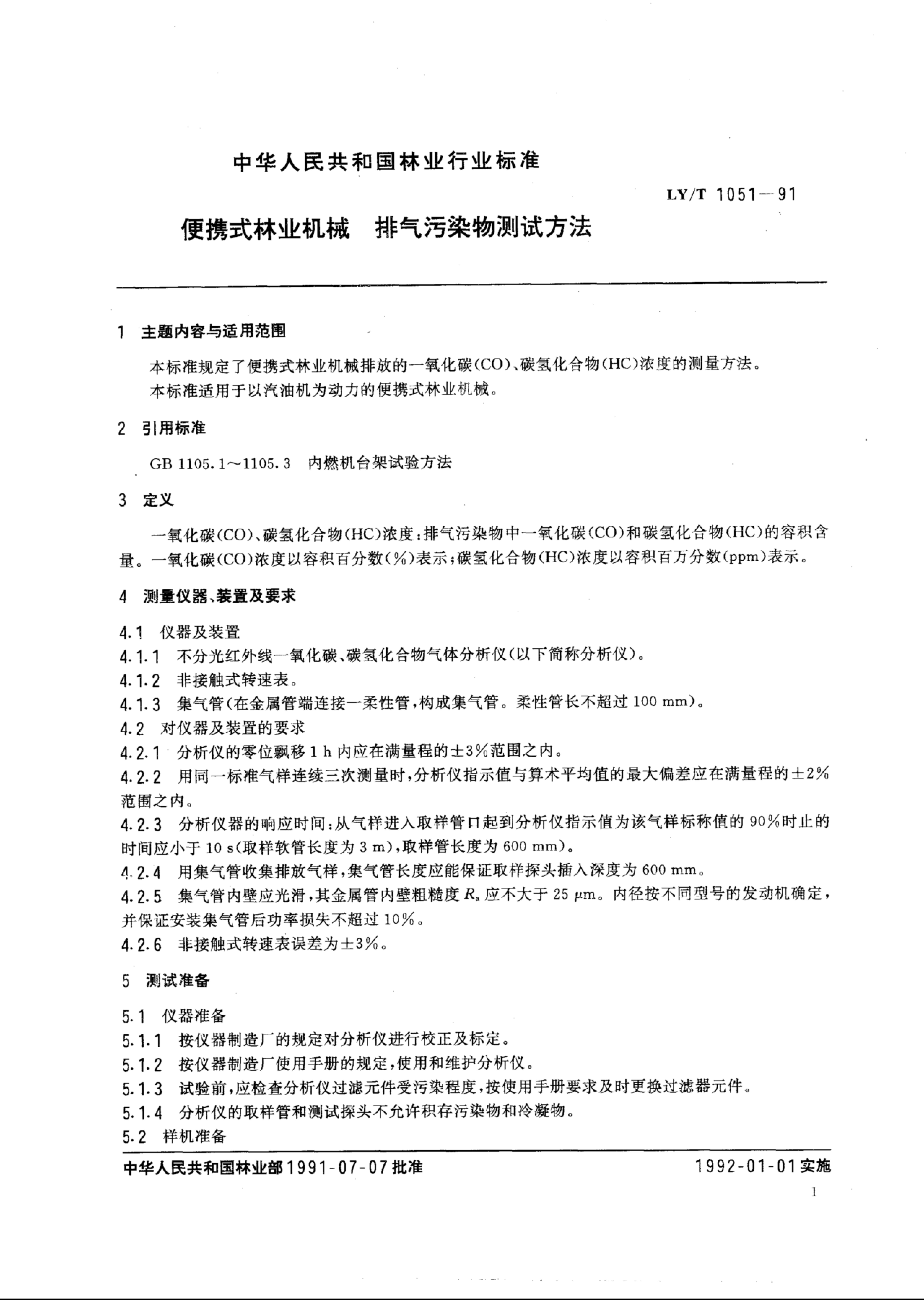LY/T 1051-1991 便携式林业机械排气污染物测试方法