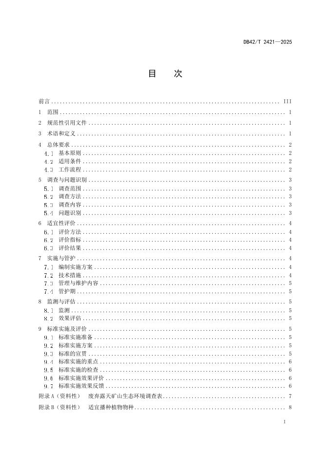 DB42/T 2421-2025 废弃露天矿山生态环境自然恢复标准