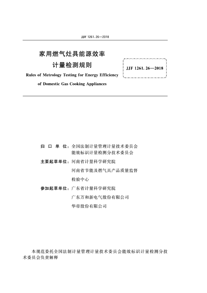 河南省计量科学研究院、河南省节能及燃气具产品质量监督检验中心、广东省计量科学研究院、广东万和新电气股份有限公司、华帝股份有限公司