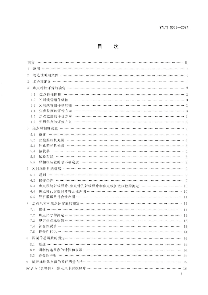 YY/T 0063-2024 医用电气设备 医用诊断X射线管组件 焦点尺寸及相关特性