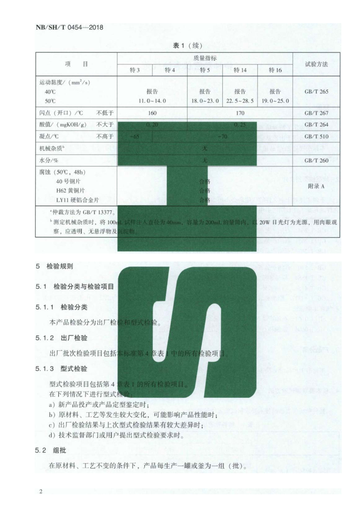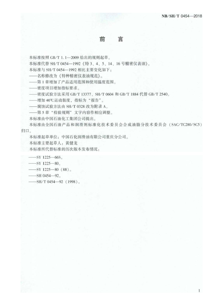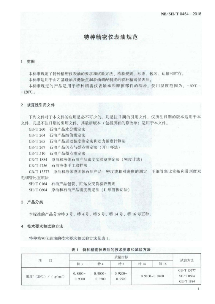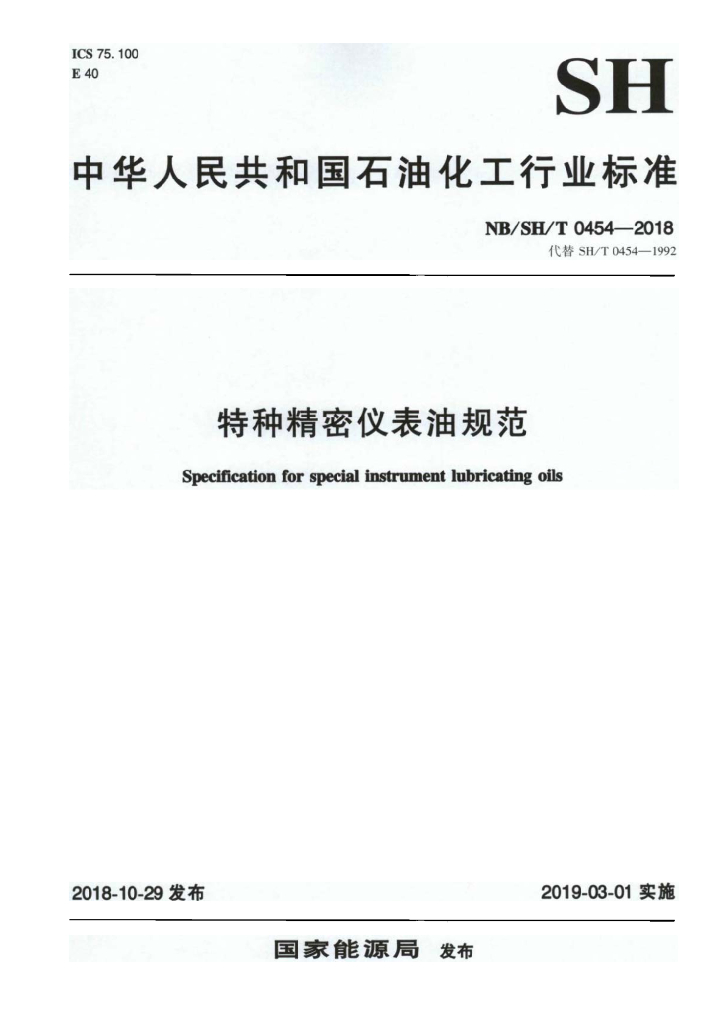 NB/SH/T 0454-2018 特种精密仪表油规范