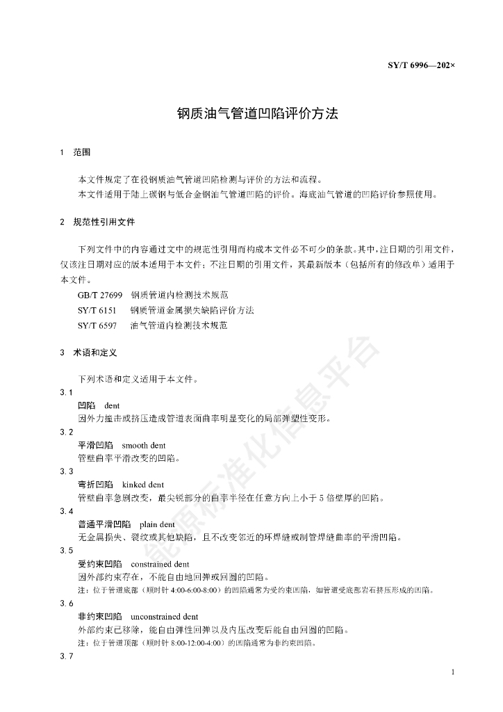 SY/T 6996-2024 钢质油气管道凹陷评价方法