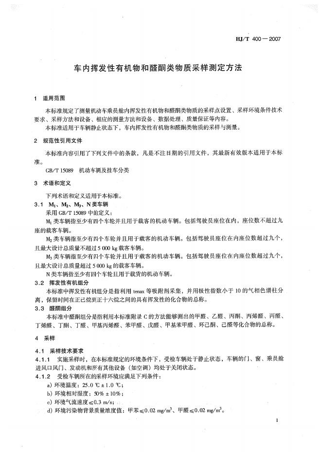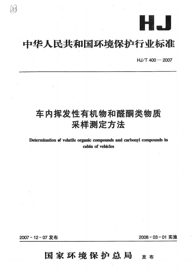 HJ/T 400-2007 车内挥发性有机物和醛酮类物质采样测定方法