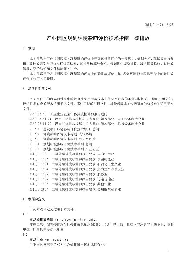 DB11/T 2479-2025 产业园区规划环境影响评价技术指南 碳排放