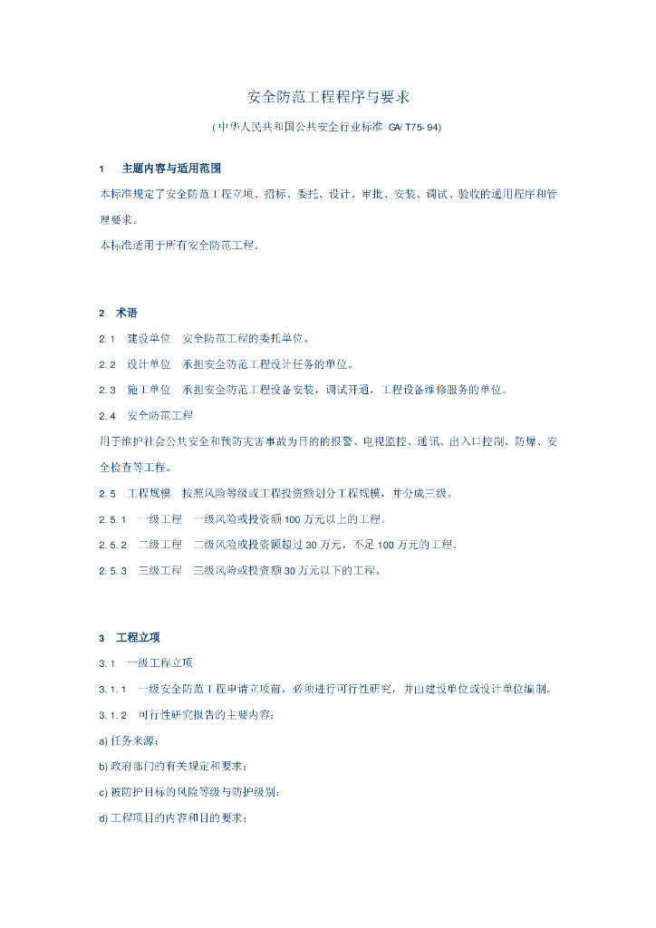 GA/T 75-1994 安全防范工程程序与要求