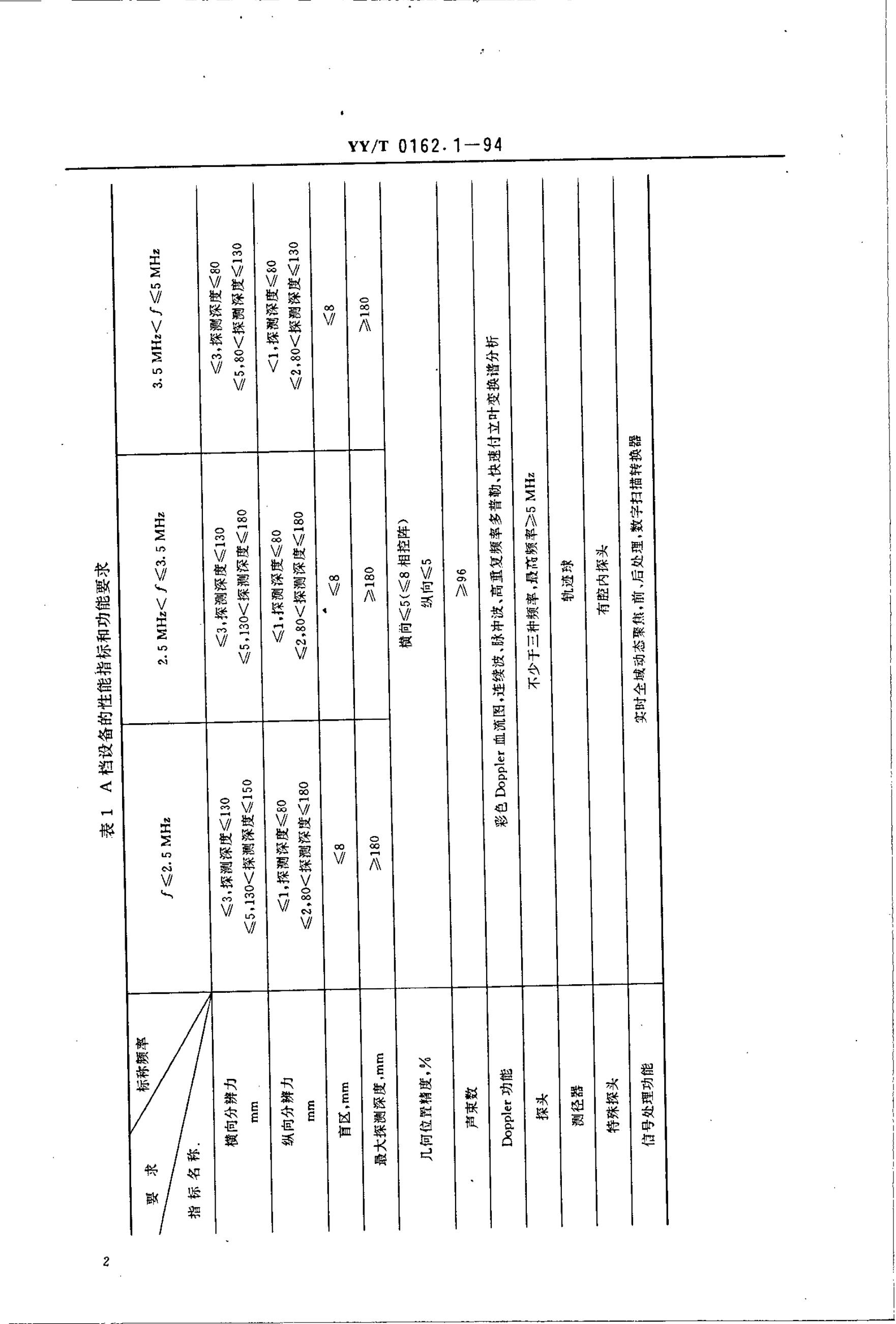 YY/T 0162-1994 医用超声设备档次系列 第一部分 B型超声诊断设备