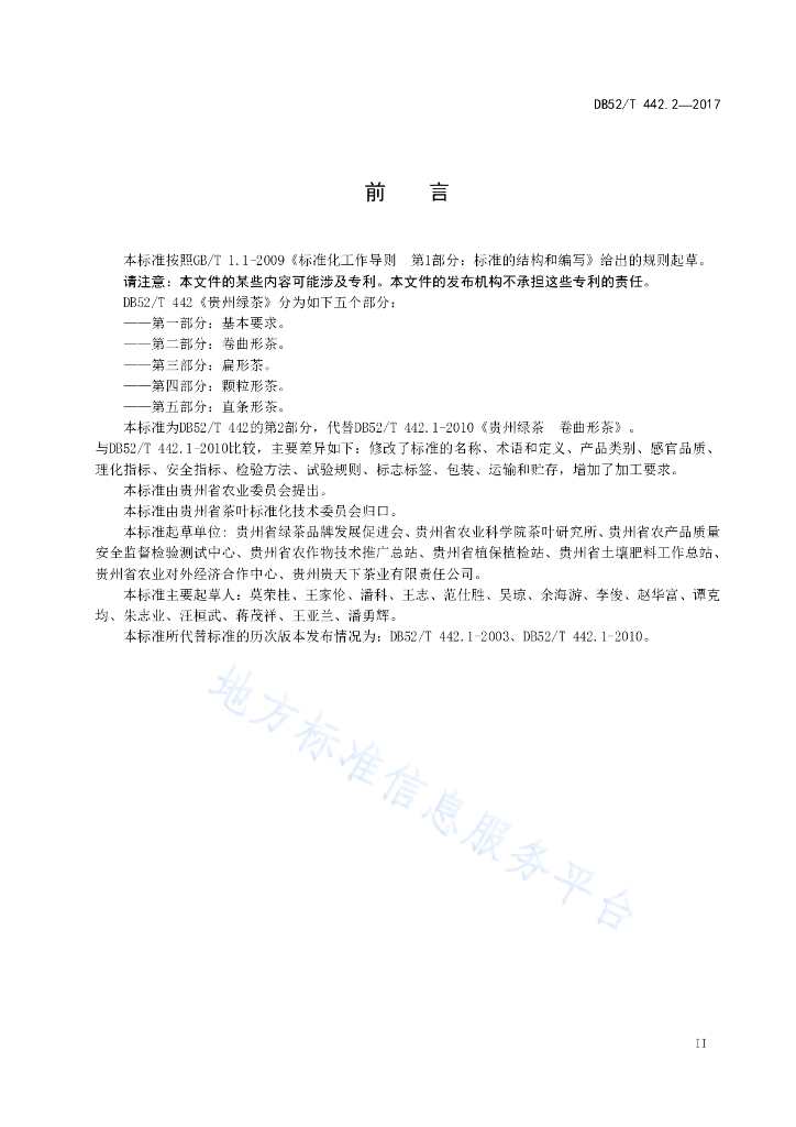 DB52/T 442.2-2017 贵州绿茶 第2部分:卷曲形茶
