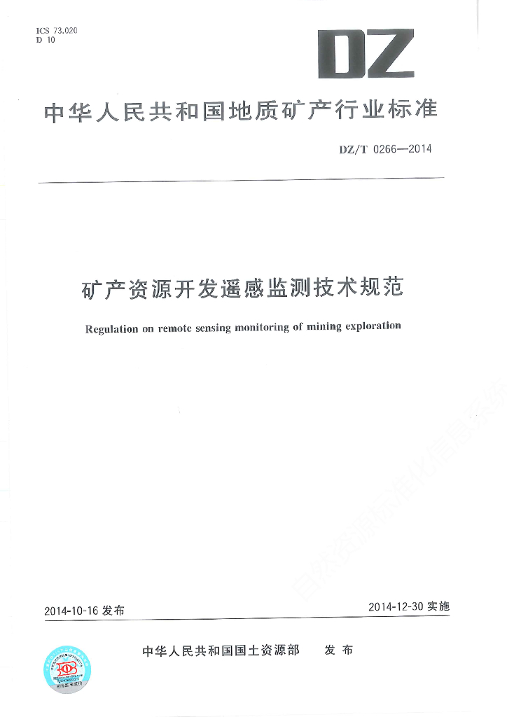 DZ/T 0266-2014 矿产资源开发遥感监测技术规范