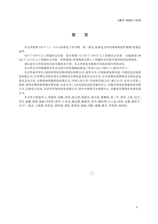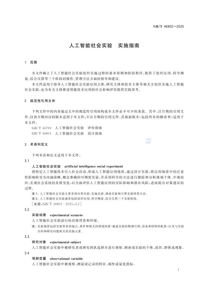 GB/T 46802-2025 人工智能社会实验 实施指南