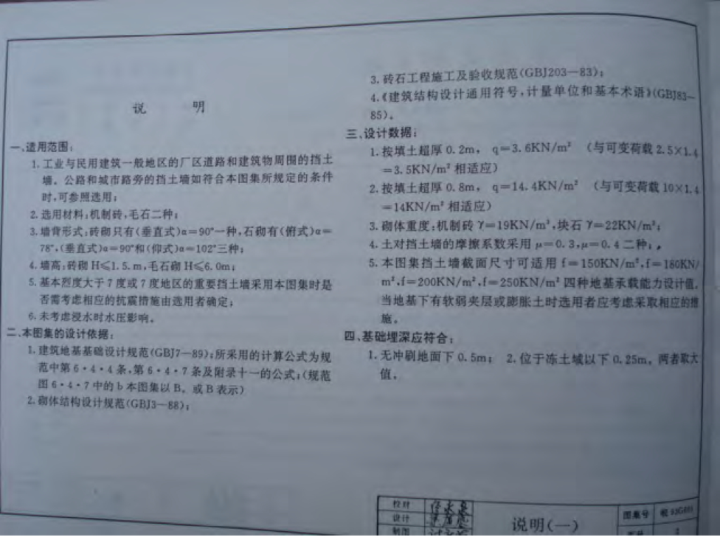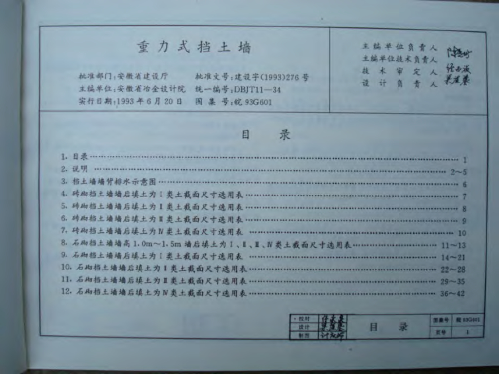 皖93G601 重力式挡土墙图集