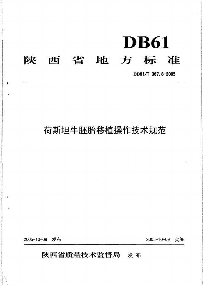 DB61/T 367.8-2005 荷斯坦牛胚胎移植操作技术规范