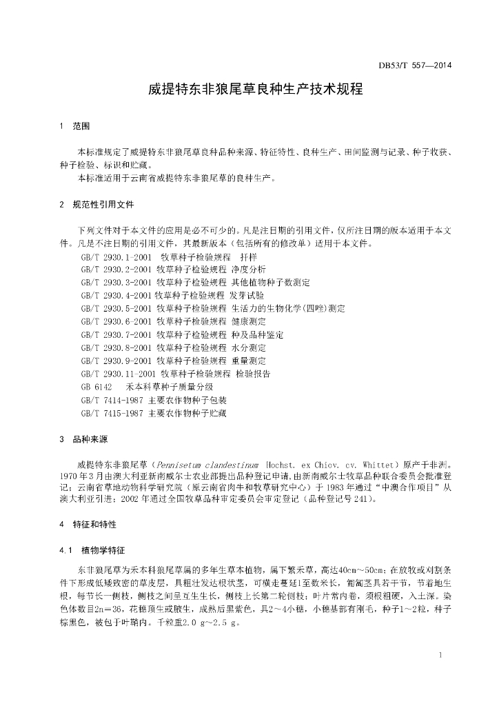 DB53/T 557-2014 威提特东非狼尾草良种生产技术规程