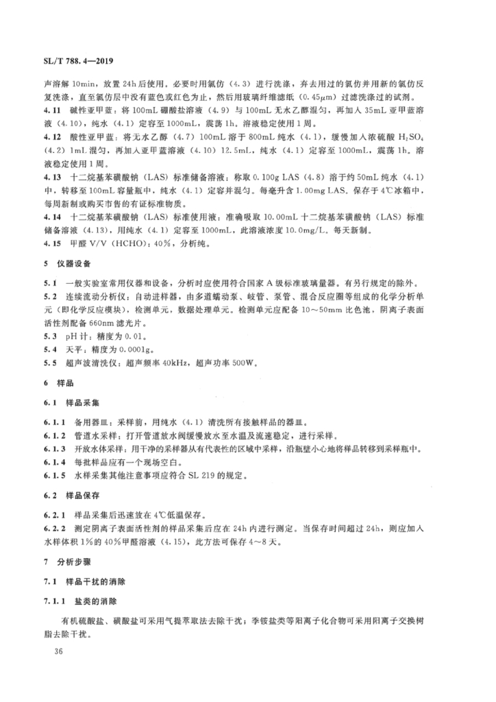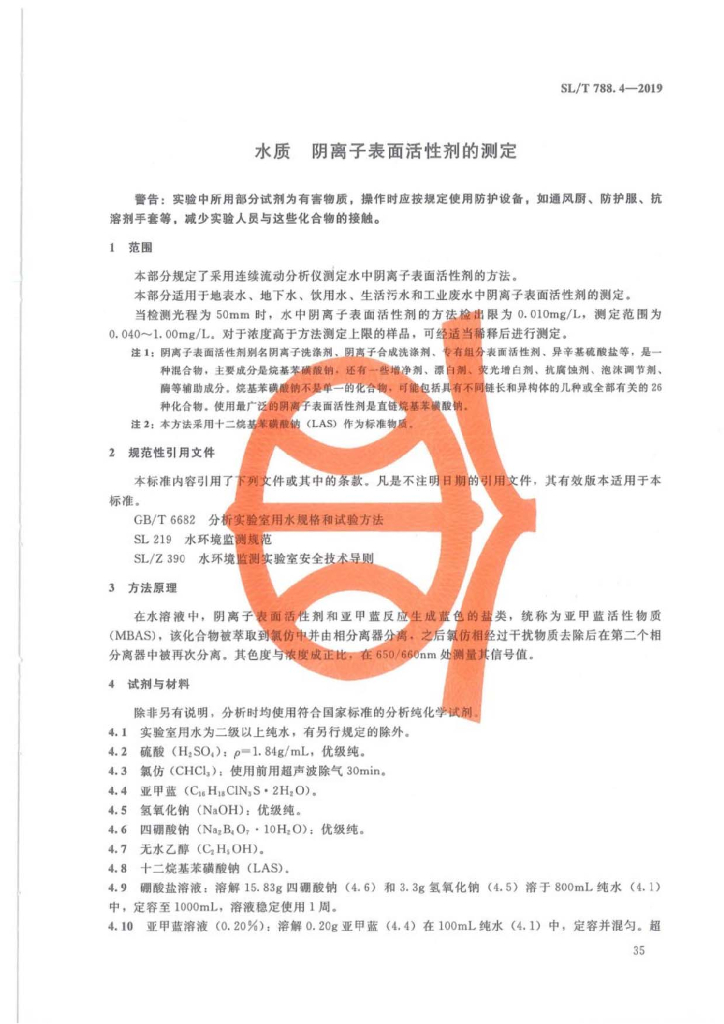 SL/T 788.4-2019 第4部分水质阴离子表面活性剂的测定