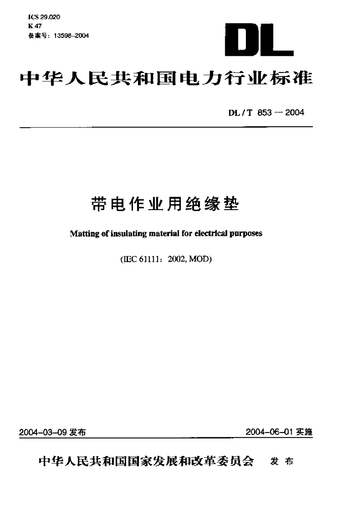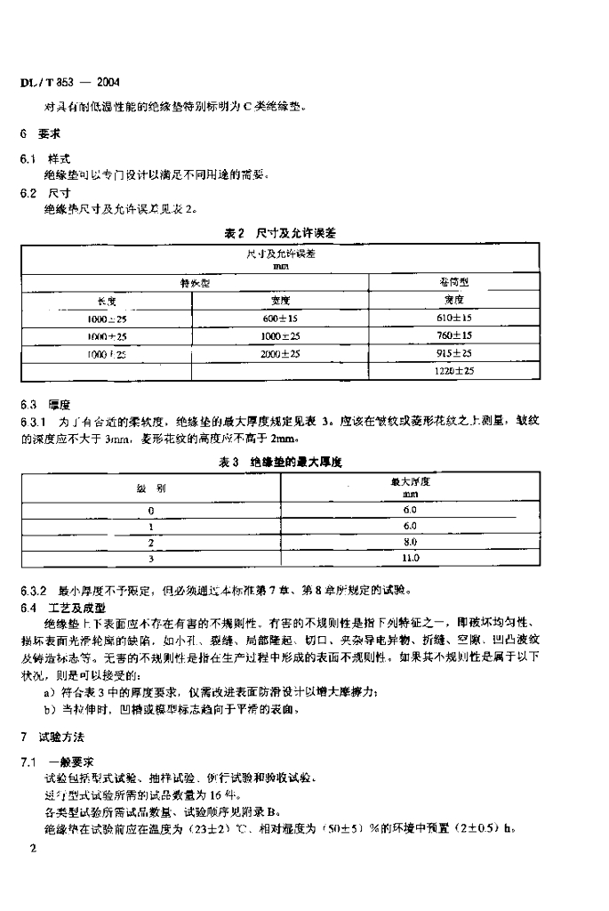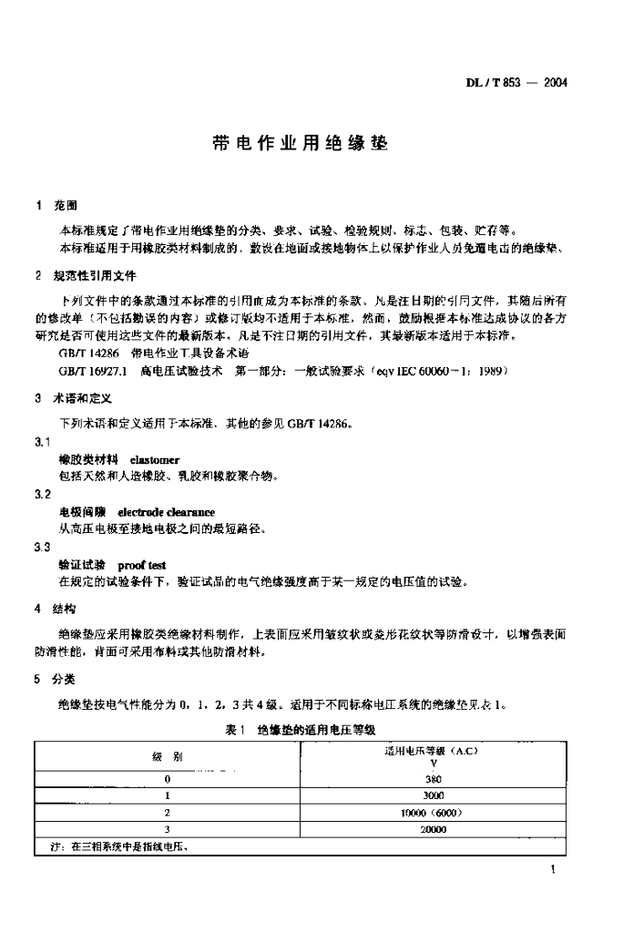 DL/T 853-2004 带电作业用绝缘垫