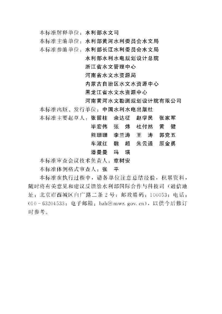 水利部黄河水利委员会水文局、水利部长江水利委员会水文局、水利部水利水电规划设计总院、浙江省水文管理中心、河南省水文水资源局、内蒙古自治区水文水资源中心、黑龙江省水文水资源中心、河南黄河水文勘测规划设计院有限公司
