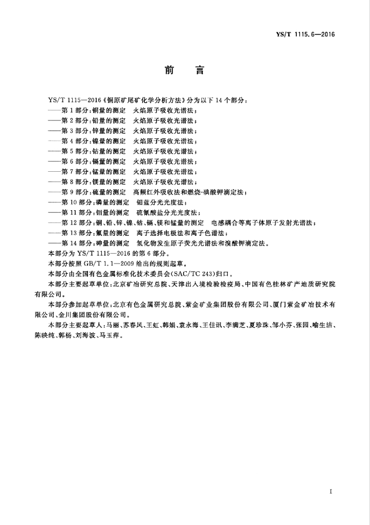 YS/T 1115.6-2016 铜原矿和尾矿化学分析方法 第6部分:镉量的测定 火焰原子吸收光谱法