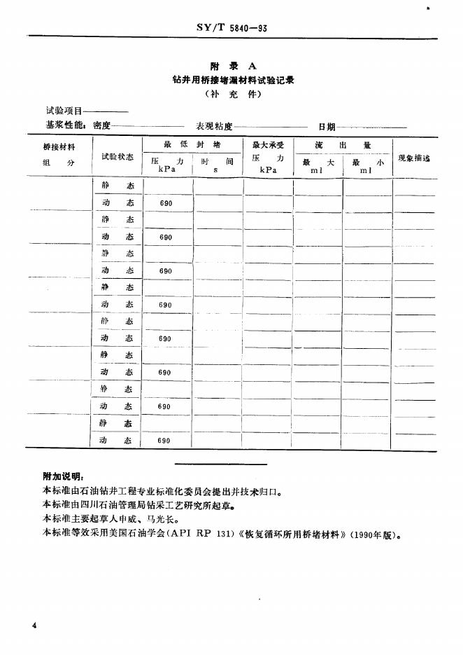 SY/T 5840-1993 钻井用桥接堵漏材料室内试验方法