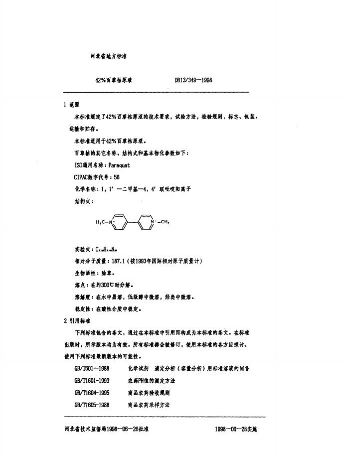 DB13/ 349-1998 42%百草枯原液