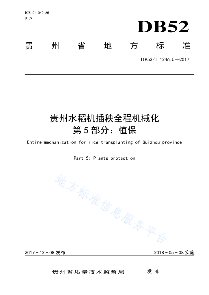DB52/T 1246.5-2017 贵州水稻机插秧全程机械化 第5部分 植保