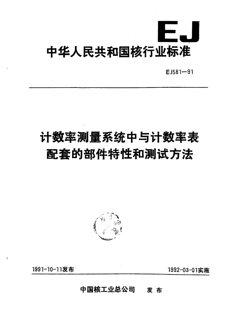 EJ/T 581-1991 计数率测量系统中与计数率表配套的部件特性和测试方法