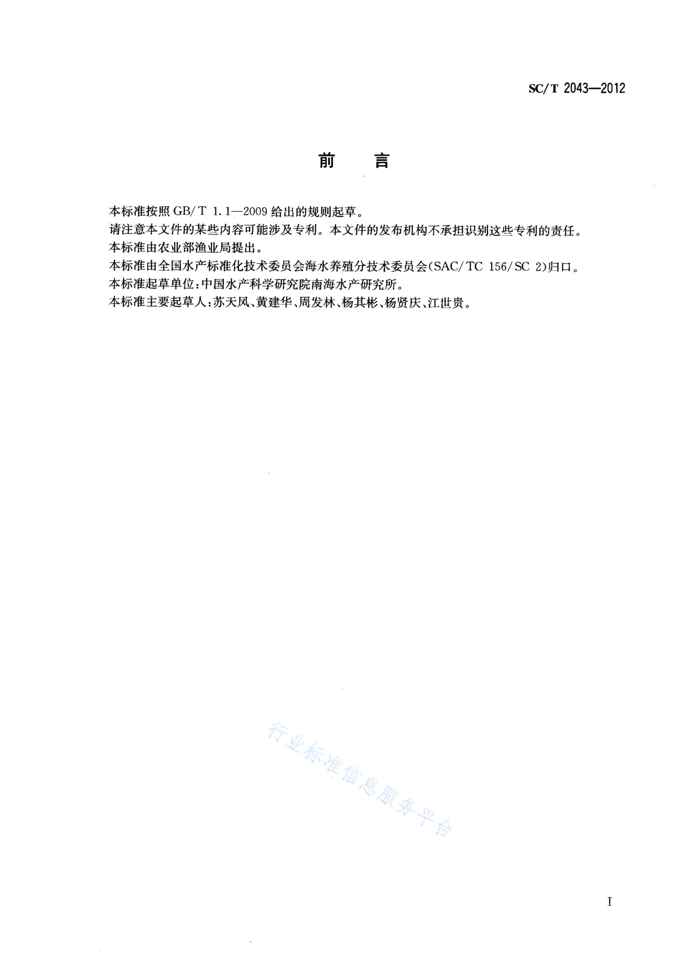 SC/T 2043-2012 斑节对虾亲虾和苗种