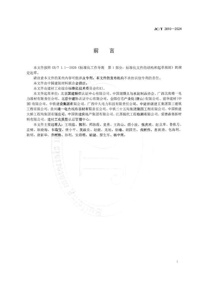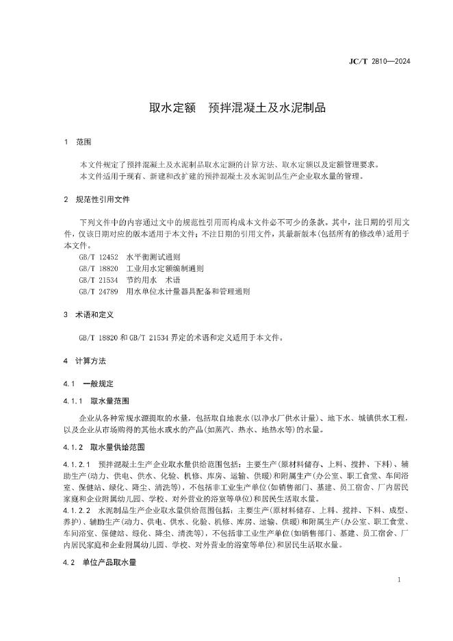 JC/T 2810-2024 取水定额 预拌混凝土及水泥制品