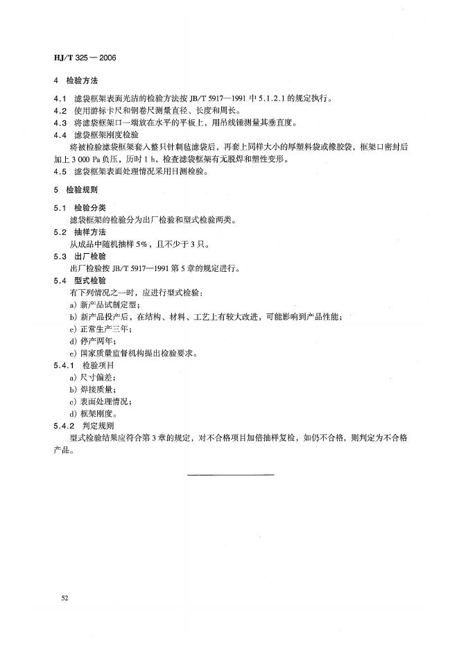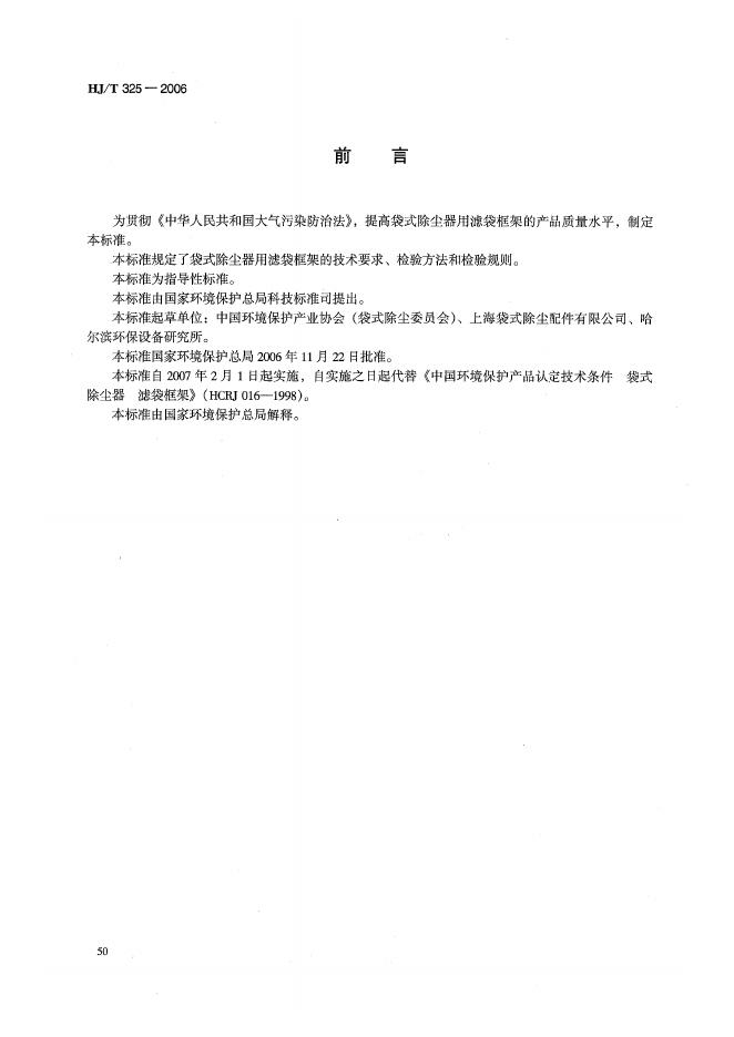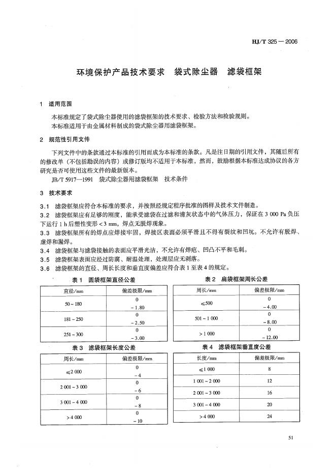 HJ/T 325-2006 环境保护产品技术要求 袋式除尘器 滤袋框架