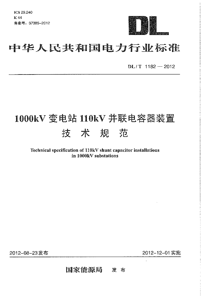 DL/T 1182-2012 1000kV变电站110kV并联电容器装置技术规范